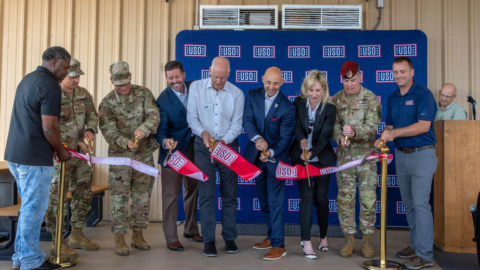 The JRTC and Fort Polk Garrison Commander Army Col. J. Adam Barlow officiated the ceremony, joined by USO Southeast Regional President Lisa Marie Riggins, and several other military and civilian officials.